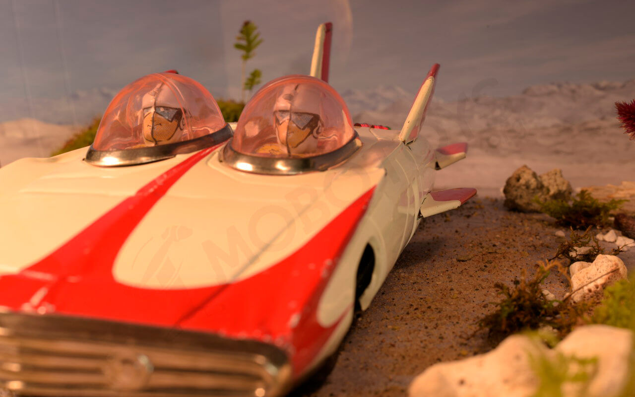 From its seven fins and the double-bubble down to the hubcaps this replica battery-operated toy is an exact 1:18 scale copy of its namesake. ALPS included a high rpm engine (DC motor) just like the 30,000 rpm turbine engine in the prototype, it also added a “flashing engine light” for additional … er, flash. It is amazing how this design still has a futuristic feel to it 70 years later.