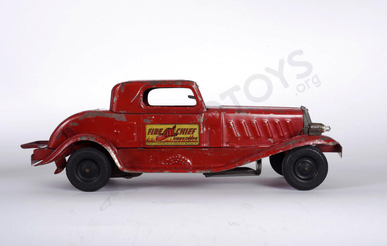 Made right here in the USA by the Girad Model Works Company this Fire Chief Siren Car is another early example of toy designers combining proven wind-up toy technology with battery-operated lights added on to stand out from their competitors (It worked).