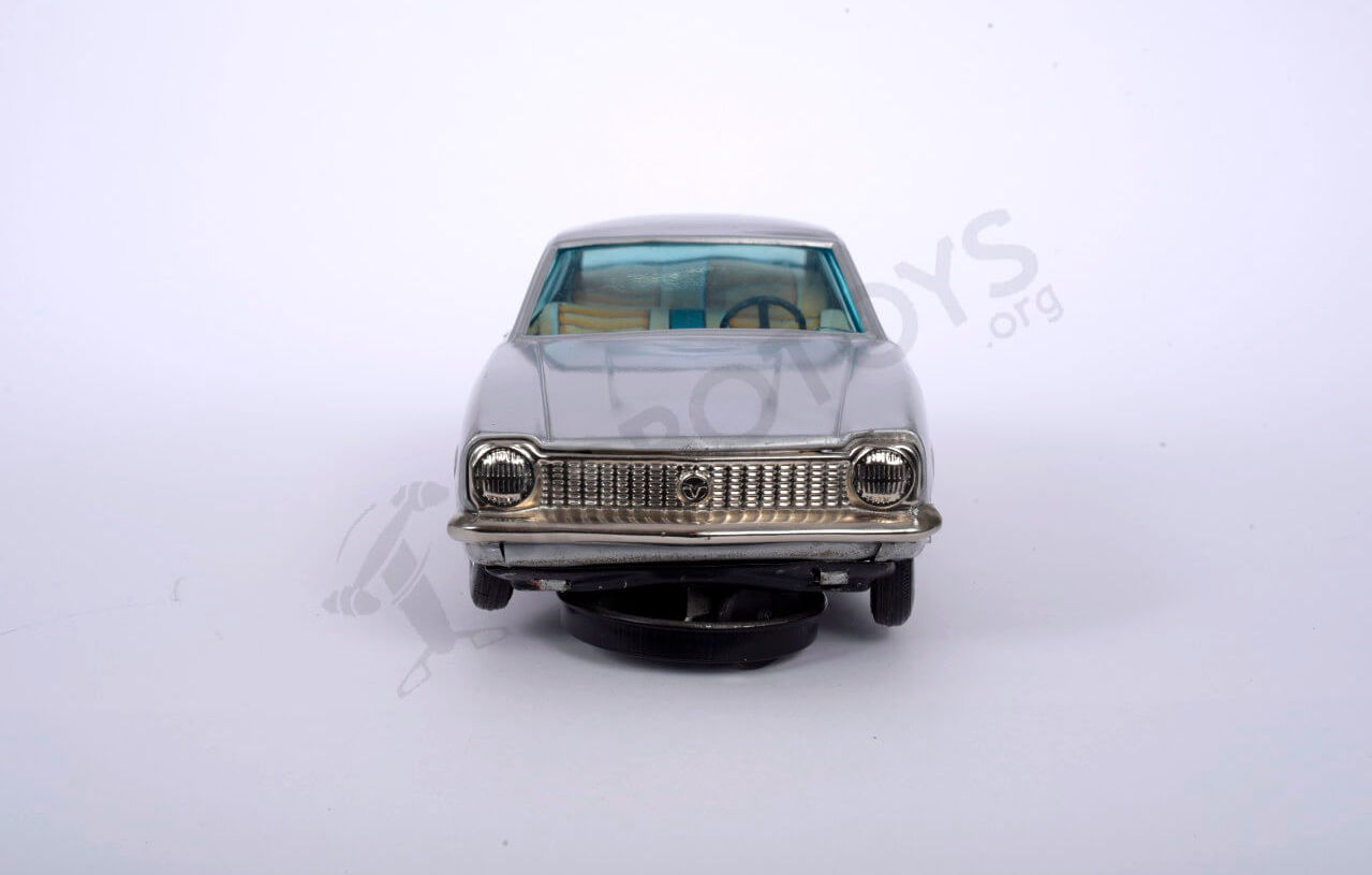 This Ford Maverick features a mystery bump-n-go action AND a non-fall wheel to prevent the car from falling off a table-top and an ON/OFF lever on the bottom rear side of the car. It also sports a colorful interior, front and rear chrome bumpers, wrap around glass and proudly displays "Maverick" on the rear license plate.
