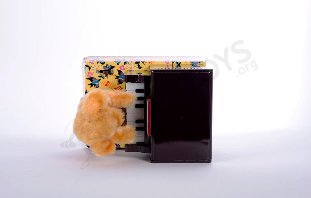 This was the brilliant tag-line Linemar used on many of their toy boxes and advertisements. No we do not have them all but we love all they toys they made and this piano playing puppy is no exception.