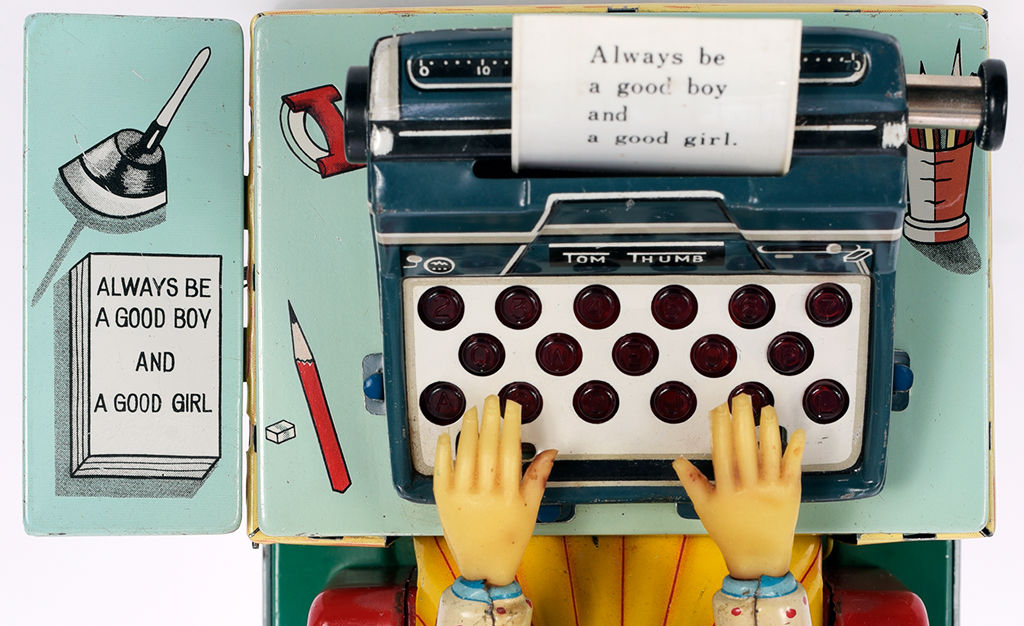 There are more common versions of this toy with fewer actions, but the Tom Thumb typewriter with all the actions included is a rare sight.